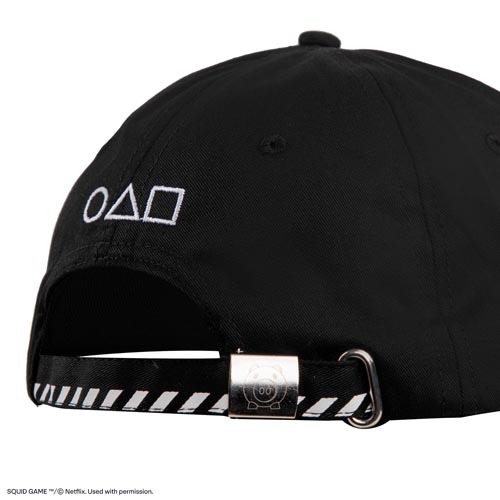 Embrace a stylish fusion of pop culture and sportswear with this trendy cap featuring iconic Squid Game logos in a vibrant pink hue against a black backdrop.