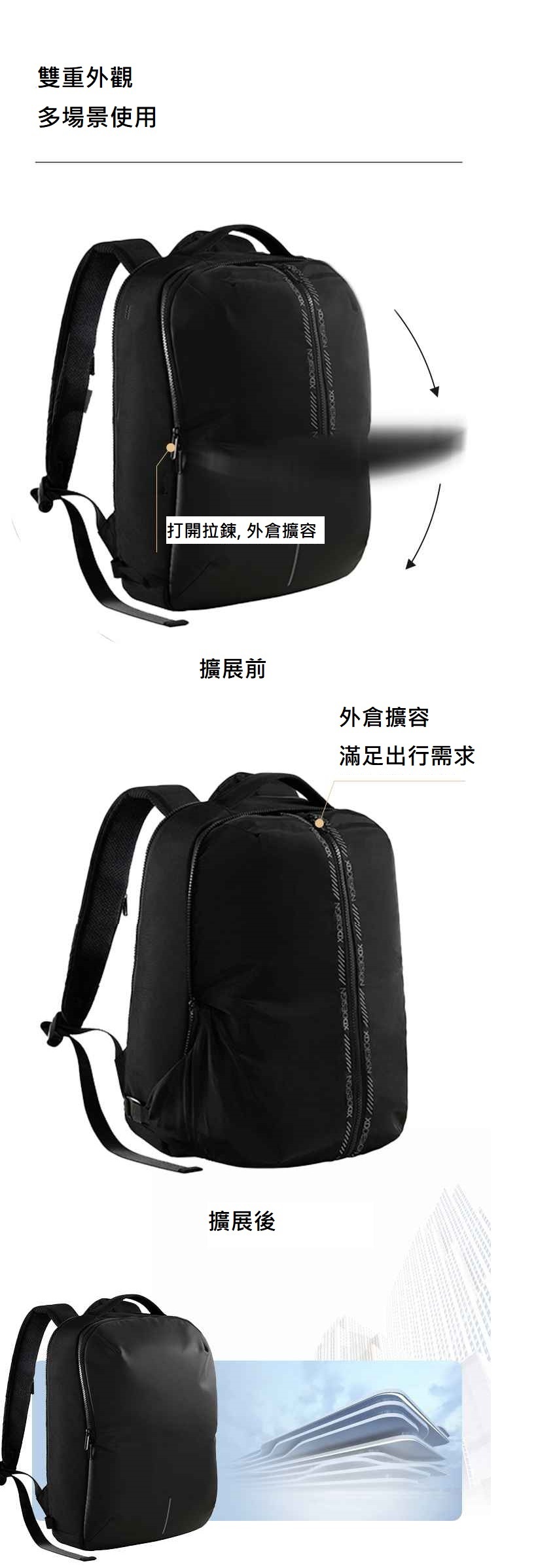 商務背包擴容秒變戶外潮包